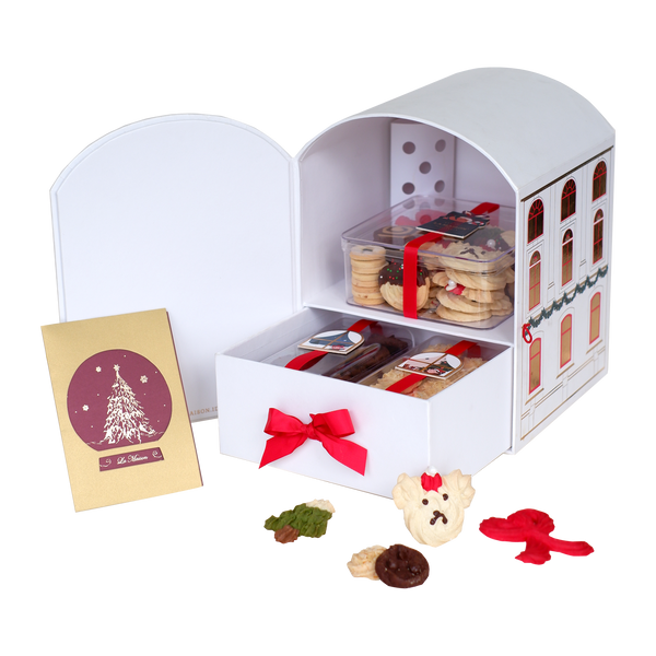 Wrapped in shades of white and gold and tied with a red ribbon, Lune Maison feels like a little Christmas home. Each detail is made to remind you of the quiet happiness found in sharing the season with loved ones.