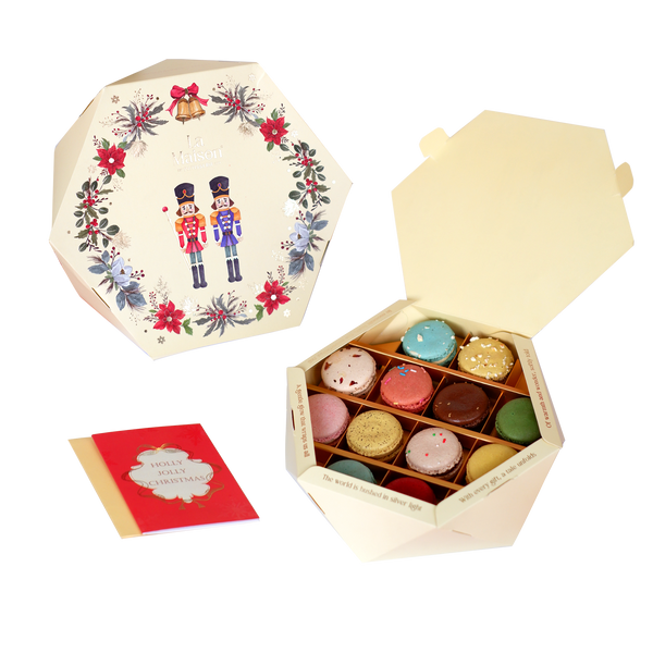Inside, discover 12 macarons, including 3 limited-edition Christmas flavors, ready to make your festive moments extra merry and bright.